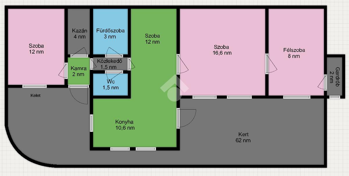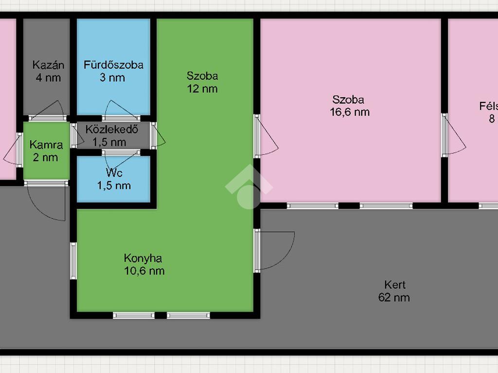 Két bejárattal rendelkezik, ennek köszönhetően akár két külön lakrész kialakítása is megoldható.