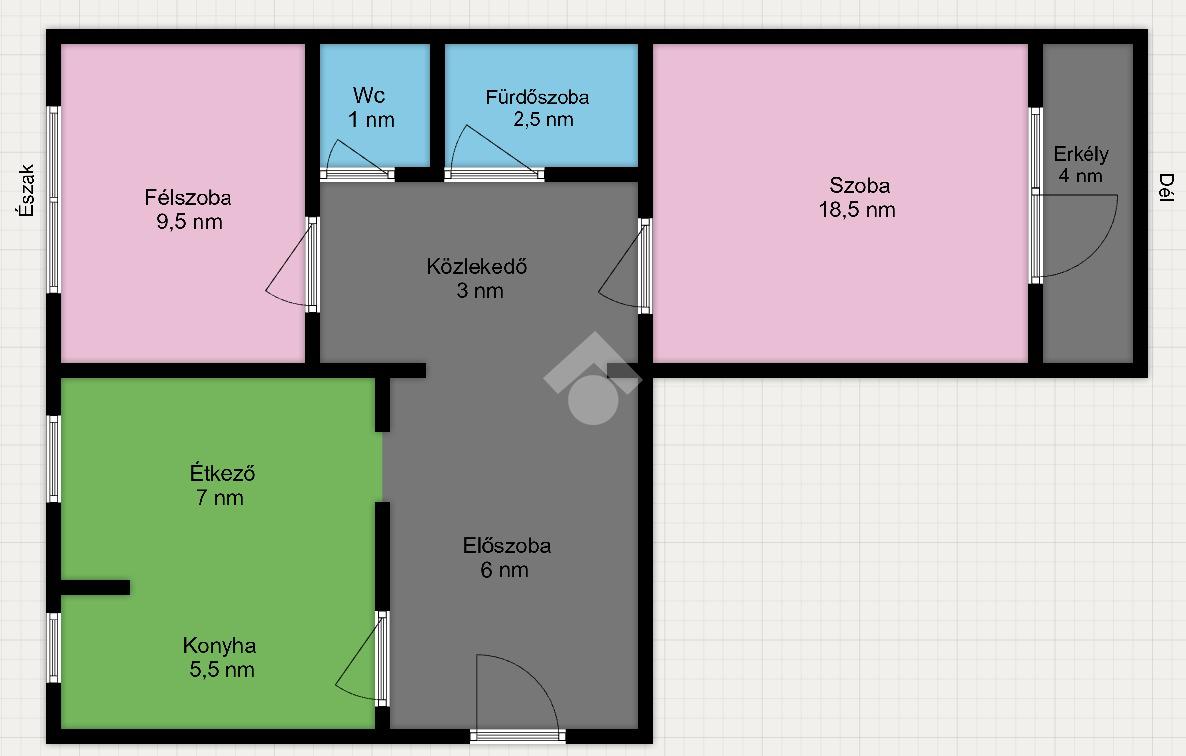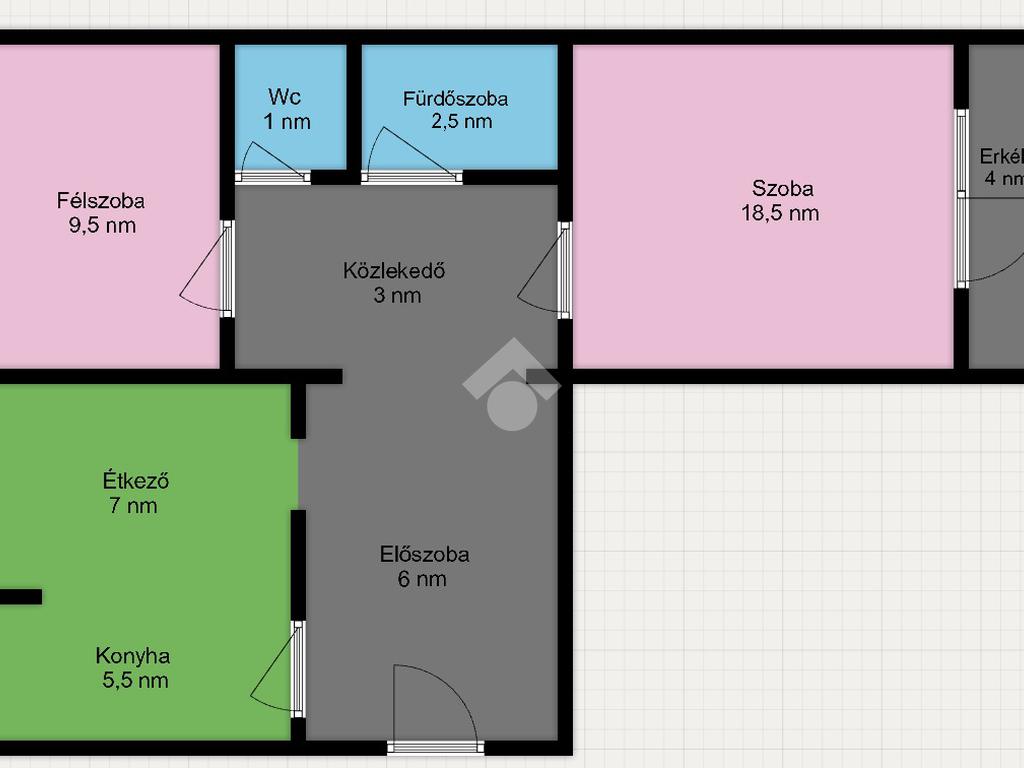 - Laminált padló a szobákban, járólap a többi helyiségben
